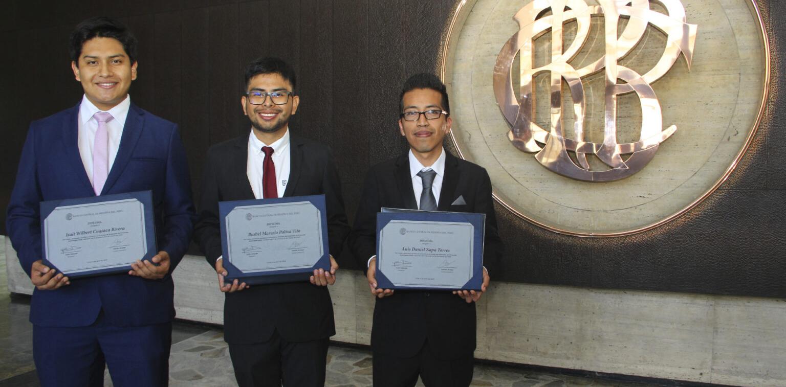 Cinco estudiantes de Finanzas y Economía PUCP fueron galardonados por su rendimiento en los Cursos Extensión del Banco Central de Reserva del Perú (BCRP). Luis Napa, Isait Coasaca y Marcelo Paliza ocuparon los primeros lugares en Finanzas Avanzadas; y, Rafael Velarde Polar, el segundo puesto en Economía Avanzada. El director de la carrera de Finanzas, Alonso Segura, resaltó el mérito de los estudiantes, considerando la exigencia de los cursos del BCRP, y reafirmó la efectividad de la educación en Finanzas y Economía en la PUCP.