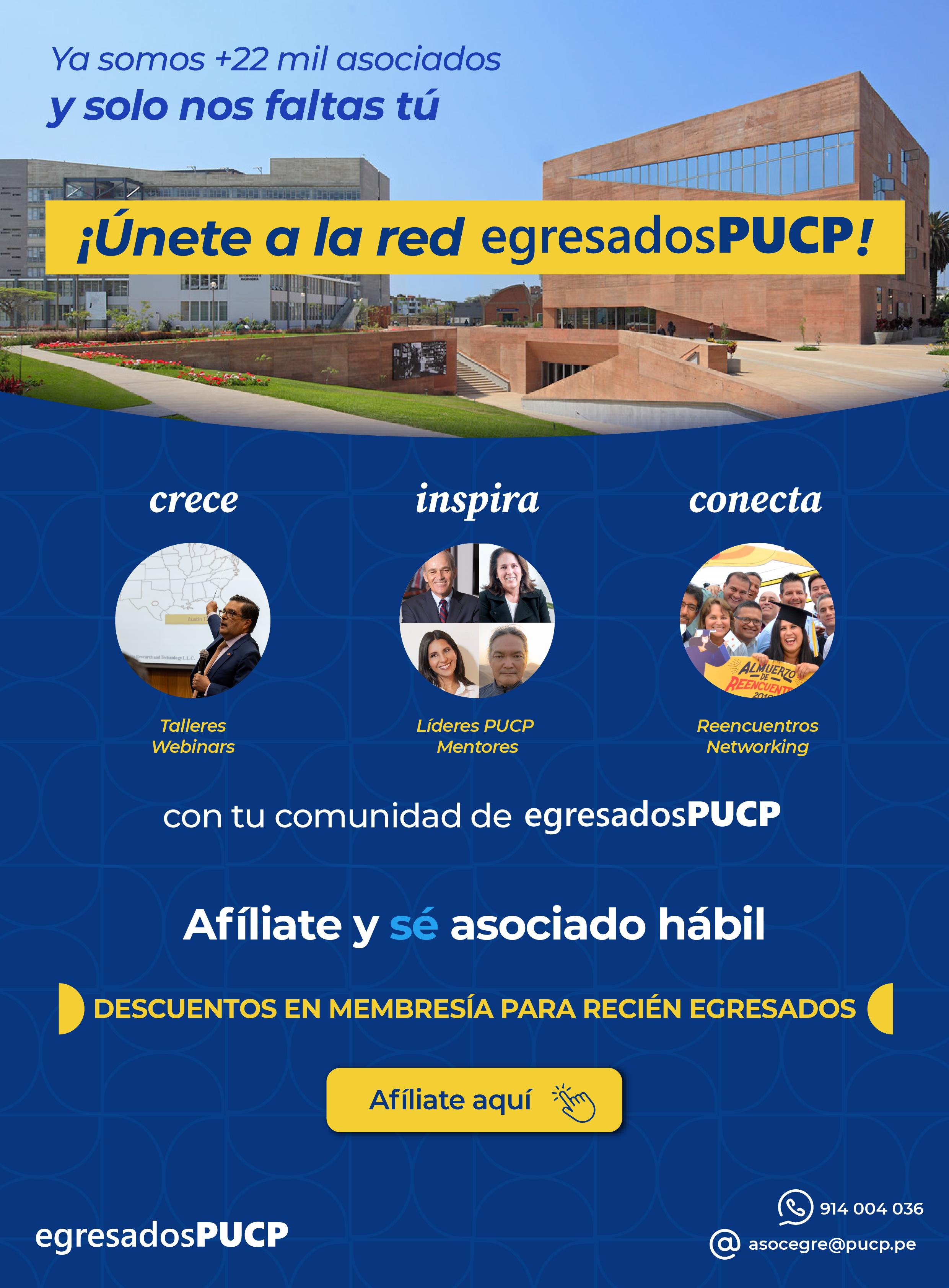 Desde la Asociación de Egresados y Graduados PUCP valoramos y agradecemos el compromiso de cada uno de nuestra RED. Reconocemos que cada uno tiene algo único que aportar, y creemos en el poder de la colaboración y el intercambio de ideas. Por ello reafirmamos nuestro compromiso y esfuerzo en crear espacios donde fomenten la conexión entre egresados, la universidad y la AEG.