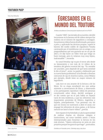 Cuando ‘HBD’, las iniciales de su nombre, decidió incursionar en la famosa red de videos siempre fue realista con el número de seguidores a conseguir. Sus primeros videos fueron de aficionado, pero poco a poco, y aplicando las técnicas propias, superó la barrera del medio millón de seguidores.“Estaba caminando por el tontódromo con un amigo y nos preguntábamos qué nos gustaría ser en un par de años y le dije hacer un video viral que tenga un buen mensaje, pero lo veíamos muy muy lejano, inalcanzable.”, recuerda. Su canal Detodoy rap va por el tercer año desde su lanzamiento y con más de 70 videos de la temática del género musical del rap. “Es rentable ser youtuber, pero depende de qué tanta seriedad le des al tema”, acota. La pasión y dedicación por su nueva faceta profesional lo ha llevado a diversos concursos de rap en America Latina, como México por ejemplo, donde tiene un mayor número de seguidores. Laly Arce es una amante de la lectura y de los libros. En su etapa estudiantil era una asidua asistente a conversatorio de libros, y observando a los participantes reproducir videos de personas comentando sobre obras, decidió averiguar y se dio cuenta que en el país había un espacio vacío de esta tendencia, y que los referentes más importantes provenían de México, Argentina y España, principalmente. “Las personas con las que me reunía me motivaron a abrir el canal, me empapé de referentes de otros países, y de forma natural me lancé a hacer videos”, precisa. Este espacio le ha brindado a Laly la oportunidad de realizar charlas en diversos colegios e instituciones, así como también asistir a ferias internacionales para fomentar la lectura en los más jóvenes. “Quiero enfocarme en serio en este proyecto porque me gusta lo que hago”, puntualiza. Foto: Laly Arce