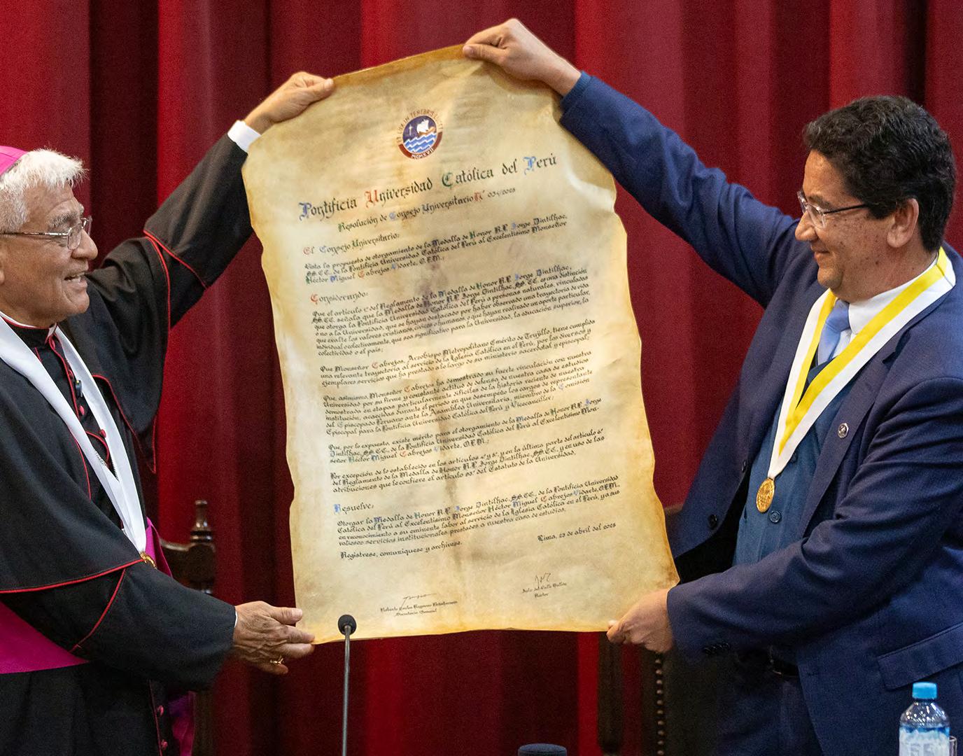 MONS. MIGUEL CABREJOS RECIBE LA MEDALLA JORGE DINTILHAC