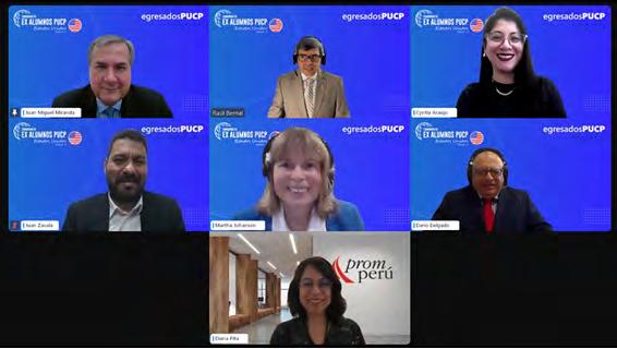 El pasado 19 de julio la Comunidad Alumni PUCP de Estados Unidos Región 5, realizó un webinar sobre las relaciones comerciales entre nuestro país y EE.UU. El evento tuvo como ponentes principales a Diana Pita, Directora de la Comisión de Comercio del Perú en Nueva York; Juan Miguel Miranda, Cónsul General del Perú en San Francisco; Cintya Araujo, CEO & Founder de IMPORTALIA y Juan Zavala, Jefe de Operaciones Queirolo. Las exposiciones se centraron en el comercio entre ambos países, especialmente en exportaciones con valor agregado. A la actividad asistieron 55 personas entre egresados, alumnos y otros.