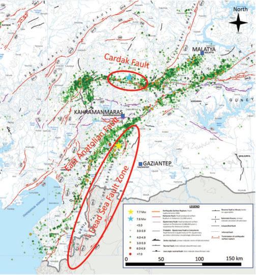 The aftermath of the East Anatolian Fault Triple Junction Earthquake Sequence in Turkey on February 6, 2023. Read the firsthand account by AEG member and survivor Efeçan Akyuzon, which begins on page 20.
