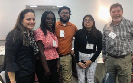 Rutgers-Newark students at Professor Gates’ geohazards talk (L to R): NYP Past Chair Rose DeLorenzo; students Tanisha Flatts (President of the RU-Newark AEG Student Chapter), Milka Casarrubias, and Jonathan Roman; and member Bob Barnes, February 9, 2023.