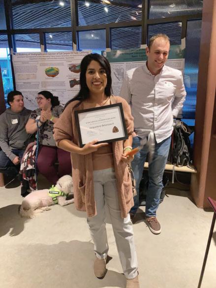 Ray Taber AEG Founders undergraduate scholarship winner Jacquelene Betancourt receives her award certificate and rock hammer as AEG Sacramento President John Murphy, PG, CHG, looks on. Jacquelene is now a Staff Geologist with Wallace-Kuhl & Associates.