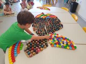 DEPOIS DA AUDIÇÃO DA HISTÓRIA "O PEIXINHO ARCO ÍRIS" CONSTRUÍMOS UM PUZZLE GIGANTE COM MATERIAIS DE DESPERDÍCIO! TODAS AS CRIANÇAS QUISERAM CONSTRUIR O PUZZLE. HOUVE AINDA O MOMENTO MUSICAL EM QUE OS OSSOS PEQUENOS CANTORES