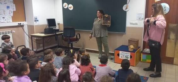 ouviram uma história na biblioteca, onde ainda tiveram tempo para fazer uma pequena atividade enquanto eram apadrinhados pelos colegas do 9.º ano, uns excelentes anfitriões sempre muito prestáveis e companheiros, que os acompanharam durante toda a manhã.