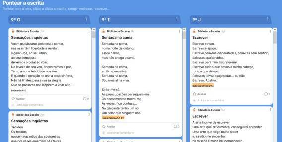 muito positiva e os trabalhos foram depois publicados no “padlet” da Biblioteca Escolar. Ler textos em