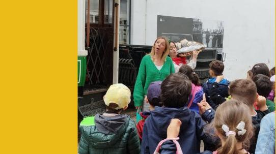 s alunos do 2.º ano da EB de Santiago, participaram em articulação com a Biblioteca Escolar nas filmagens do videoclipe das “Aventuras da Cuscas”. No final, o escritor e apicultor Paulo Santos ofereceu a cada aluno o livro “Cuscas no Mosteiro dos Jerónimos” e um chupa-chupa de mel, Ver as fotos em https://photos.app.go o.gl/Z1TBnFXF2C H3SXde7). <IP