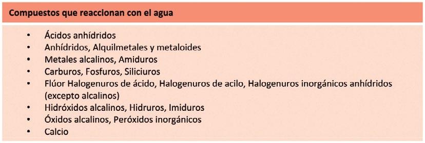 INCOMPATIBILIDAD POR REACCIÓN CON EL AGUA E INFLAMABILIDAD