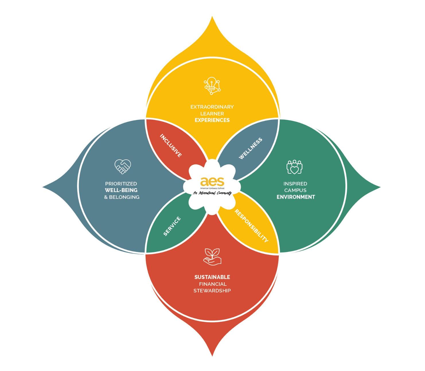 At AES, Learning is multidimensional; Learners construct deep conceptual understanding; Learners develop high levels of transferable competency; Learners pursue self-discovery through a reflective journey; Learners apply their knowledge and skills to affect positive change in a larger community.