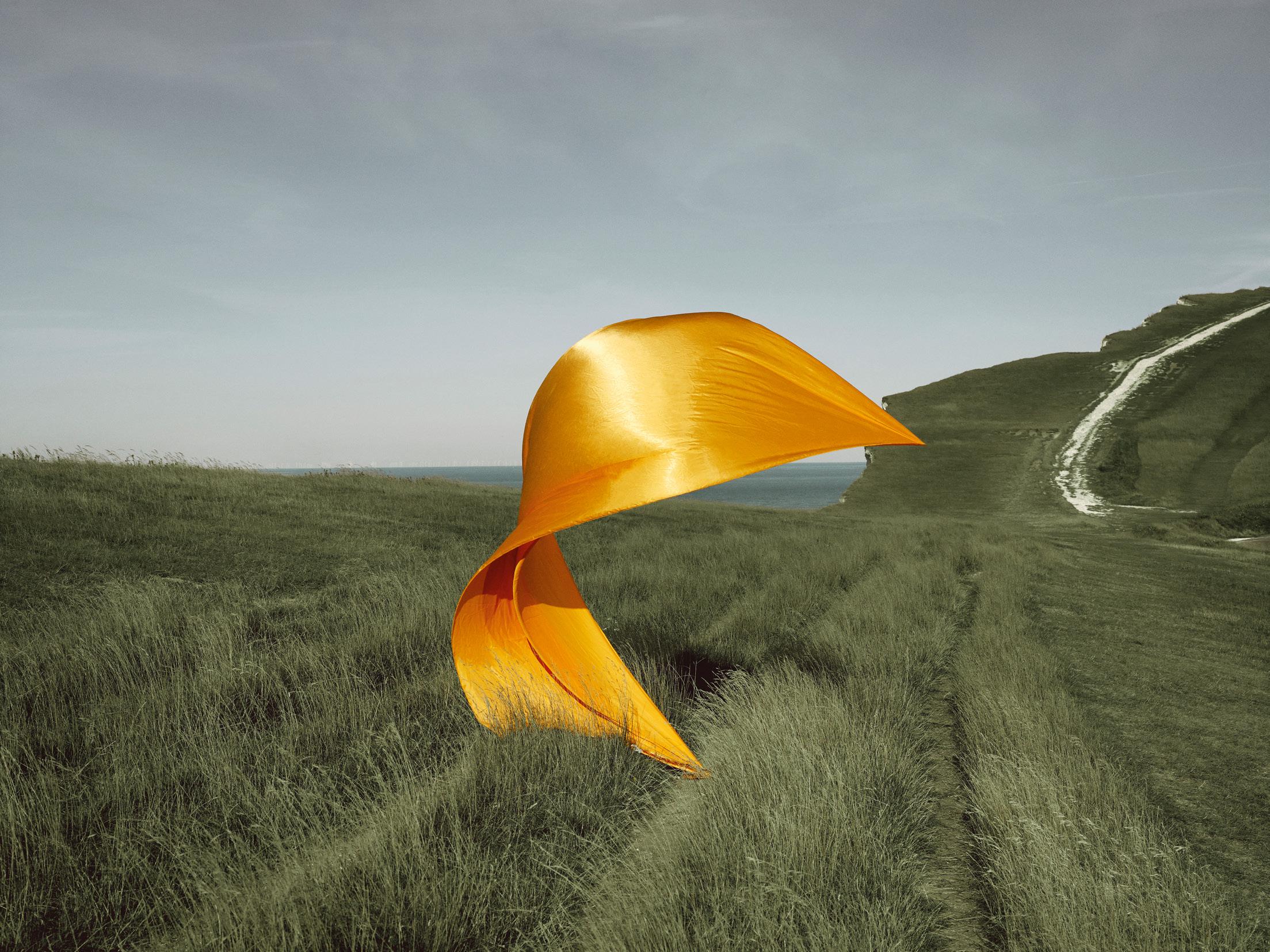 Neal Grundy’s Transient Sculptures series focuses on the concept of impermanence, depicting the beauty of fabric forms billowing in “mid-flight.”