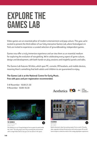 ■ The in-person festival will run 5-9 November in the centre of York, and includes film screenings; VR and Games Labs; Podcasting Lounge, industry masterclasses; social and networking events; workshops and the Fringe.