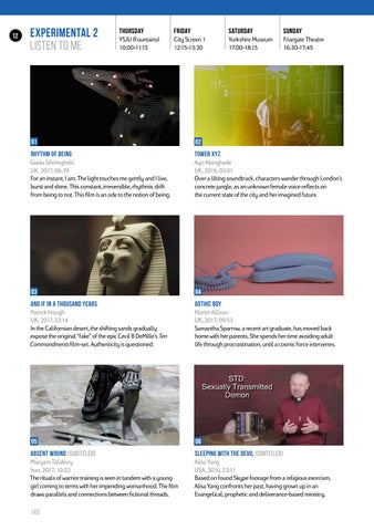 Patrick Hough UK, 2017, 22:14 In the Californian desert, the shifting sands gradually expose the original “fake” of the epic Cecil B DeMille’s Ten Commandments film-set. Authenticity is questioned. www.fvu.co.uk/projects/and-if-in-a-thousand-years