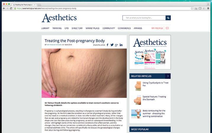 throughout the pandemic. That’s why wellness is this month’s theme and we have some great articles for you to increase your knowledge in this area. I recommend reading the Special Feature on p.23 to get an overview of how and why you should consider adding wellness services into your practice, as well as how you can holistically manage needle phobic patients on p.66. You should also read about adding weight loss services into your clinic in our In Practice section (p.75) and you can also get an overview of body contouring treatments on p.37. The different uses of botulinum toxin outside of treating lines and wrinkles always fascinates me, and to coincide with our wellness theme we also have our CPD article looking at the literature around the relationship between toxin and improving depression – an interesting read on p.29 Finally, I can’t wait to see you all again very soon at our next event – Beauty Uncovered LIVE – on May 7-8 in London. This is a truly pioneering event, opening the world of aesthetic medicine to the public! You can get free tickets on p.20 and please do spread the word so we can improve education and knowledge amongst the public about all things aesthetics!