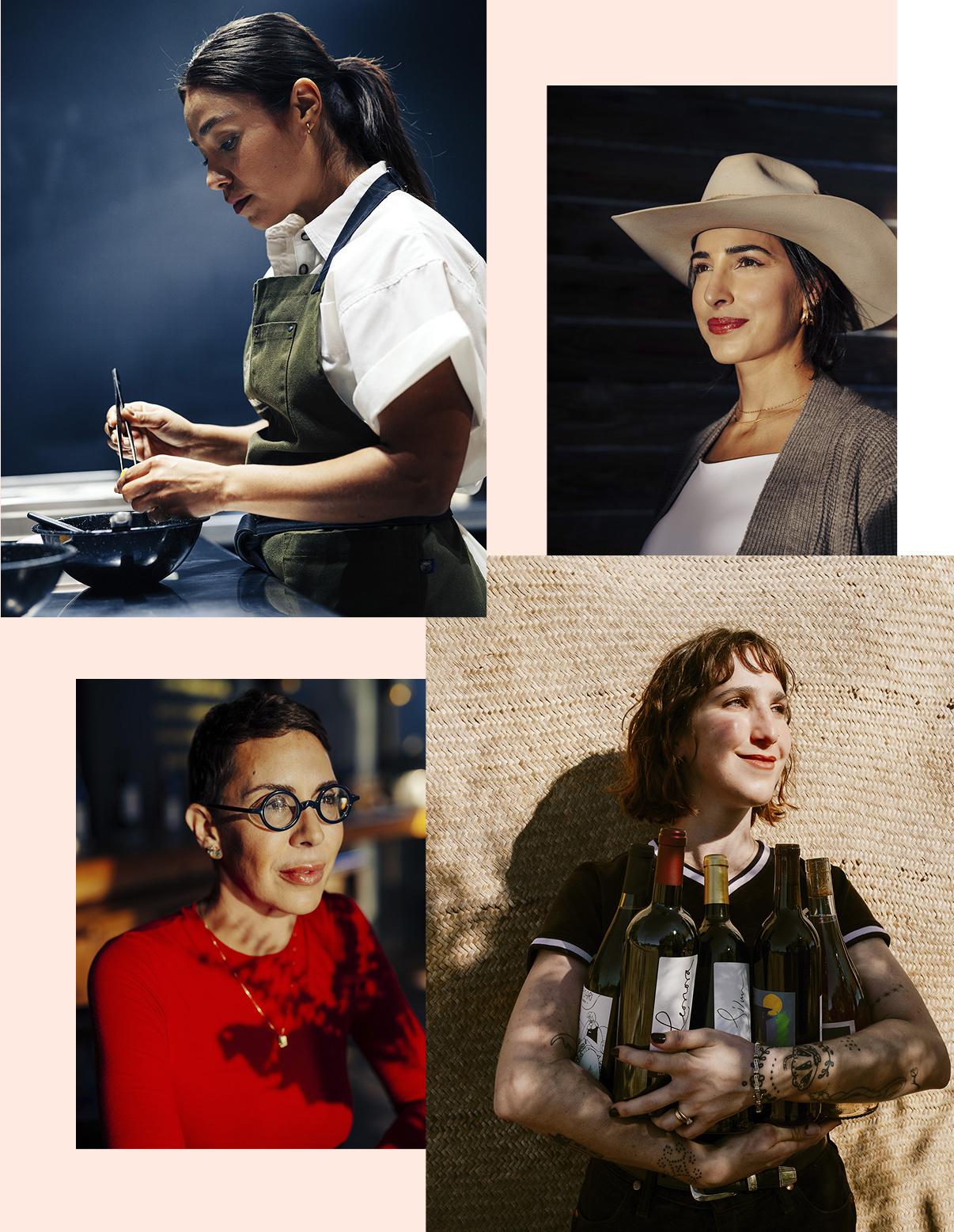 Clockwise from top left: Winemaker Verónica Santiago of Mina Penélope; chef Sheyla Alvarado of Lunario; pastry chef Maribel Aldaco Silva of Fauna; winemaker Silvana Pijoan of Vinos Pijoan; winemaker Lulú Martínez Ojeda of Bruma; Karina Campos, owner of Wine Eat and Travel