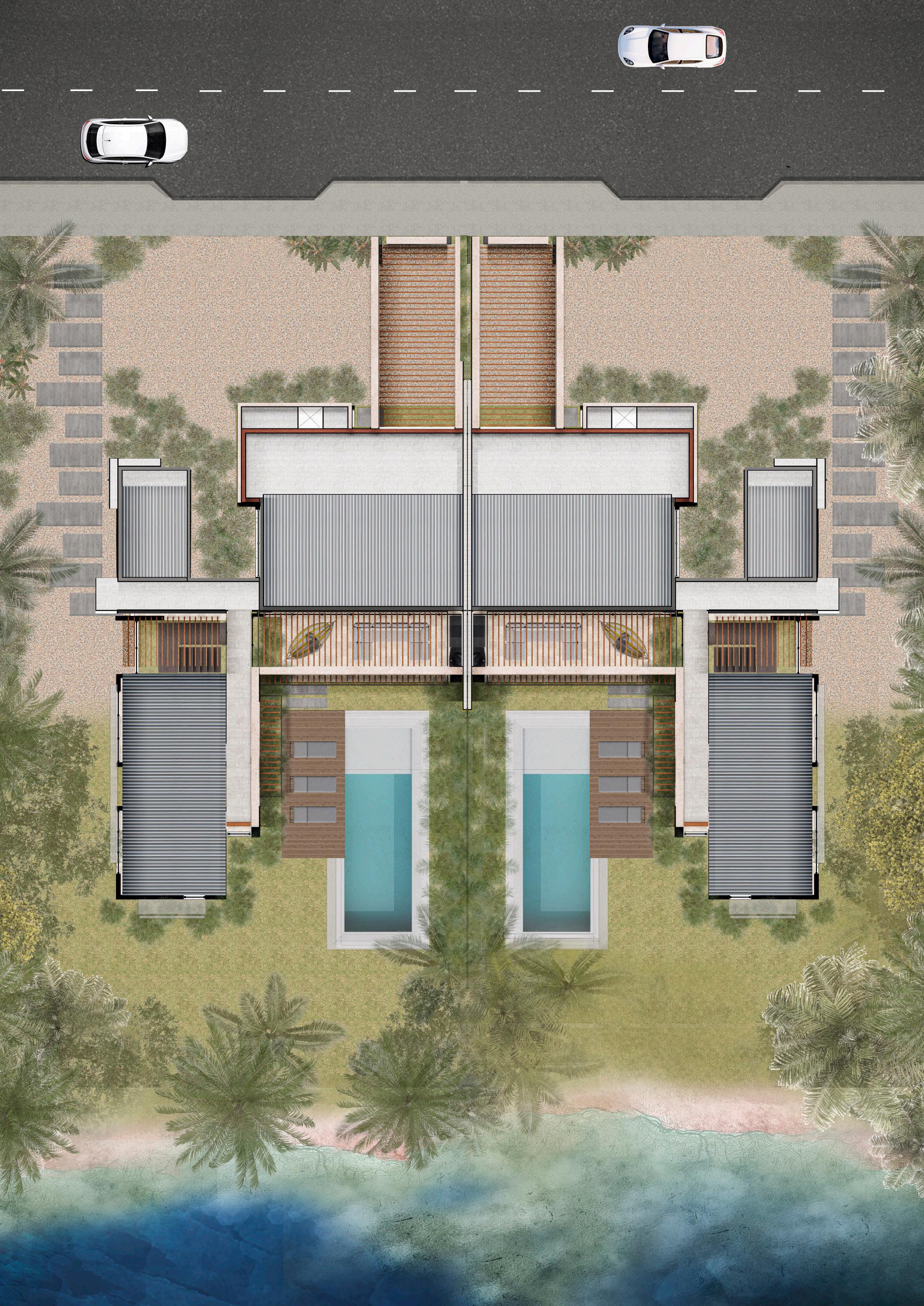 El desarrollo de estas dos viviendas se conceptualizó como dos bloques prismáticos de igual carácter y forma, los cuales se orientan en correspondencia con los niveles y curvas topográcas, cada unidad de vivienda organiza su programa a partir de un planteamiento lineal donde se conectan los espacios y las circulaciones. La materialidad de las viviendas en su gran mayoría concreto, piedra, vidrio y madera permite unas viviendas adaptadas al entorno y de acogedora en su habitabilidad.