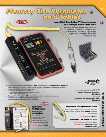 Standard Tire Probe (not shown) #52-50730 ............................... $68.99 #52-50740 .......... Brake/surface probe $109.99 (not shown)