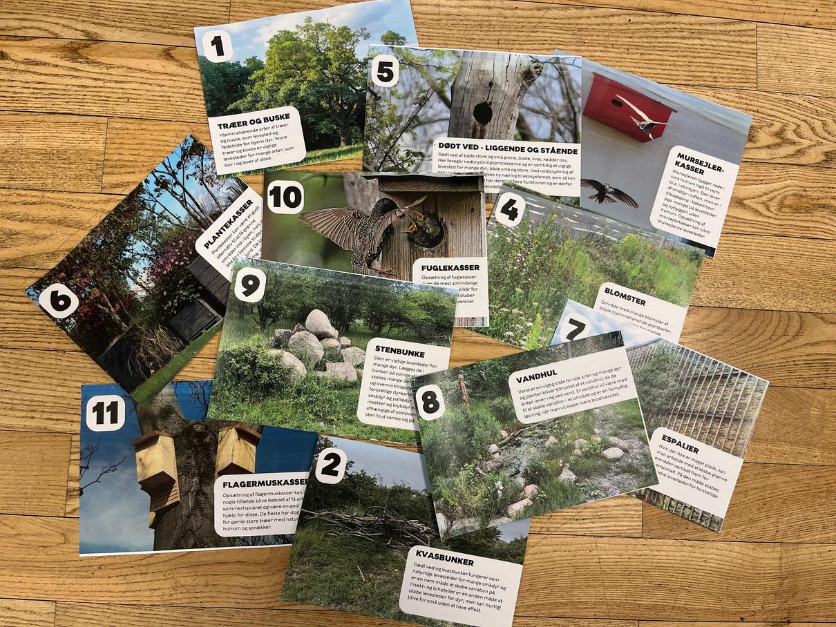 Til klimaambassadørforløbet har vi udviklet 11 biodiversitetstiltagskort. Disse kan printes og bruges under forarbejdet sammen med eleverne, for at overskueliggøre projektet og danne overblik over muligheder