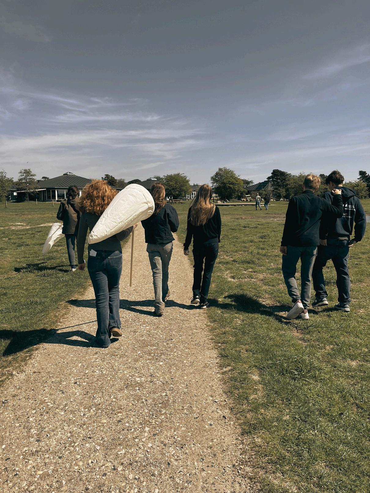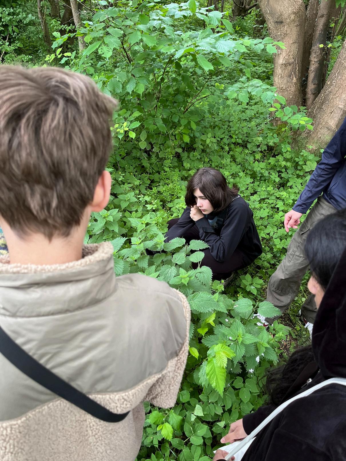 Klimaambassadørerne på feltarbejde, hvor biodiversiteten undersøges på Kalvebod Fælled i samarbejde med Københavns Naturskole