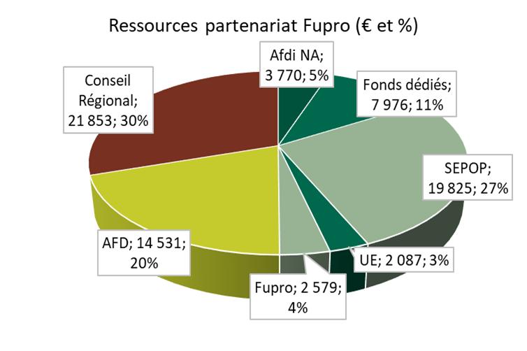 A noter, la reprise de fonds dédiés (7,6 k€) du Programme Qualité Bénin pour cofinancer les actions et suivi des programmes avec la Fupro sur cet axe.