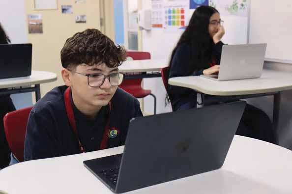 Middle school Islamic students actively engage in discussing contemporary issues using problemsolving and collaboration. They refer to the Holy Qur’an and Noble Sunnah to guide their understanding and responses. Through class presentations, they confidently share their insights and solutions, developing both their Islamic knowledge and communication skills.