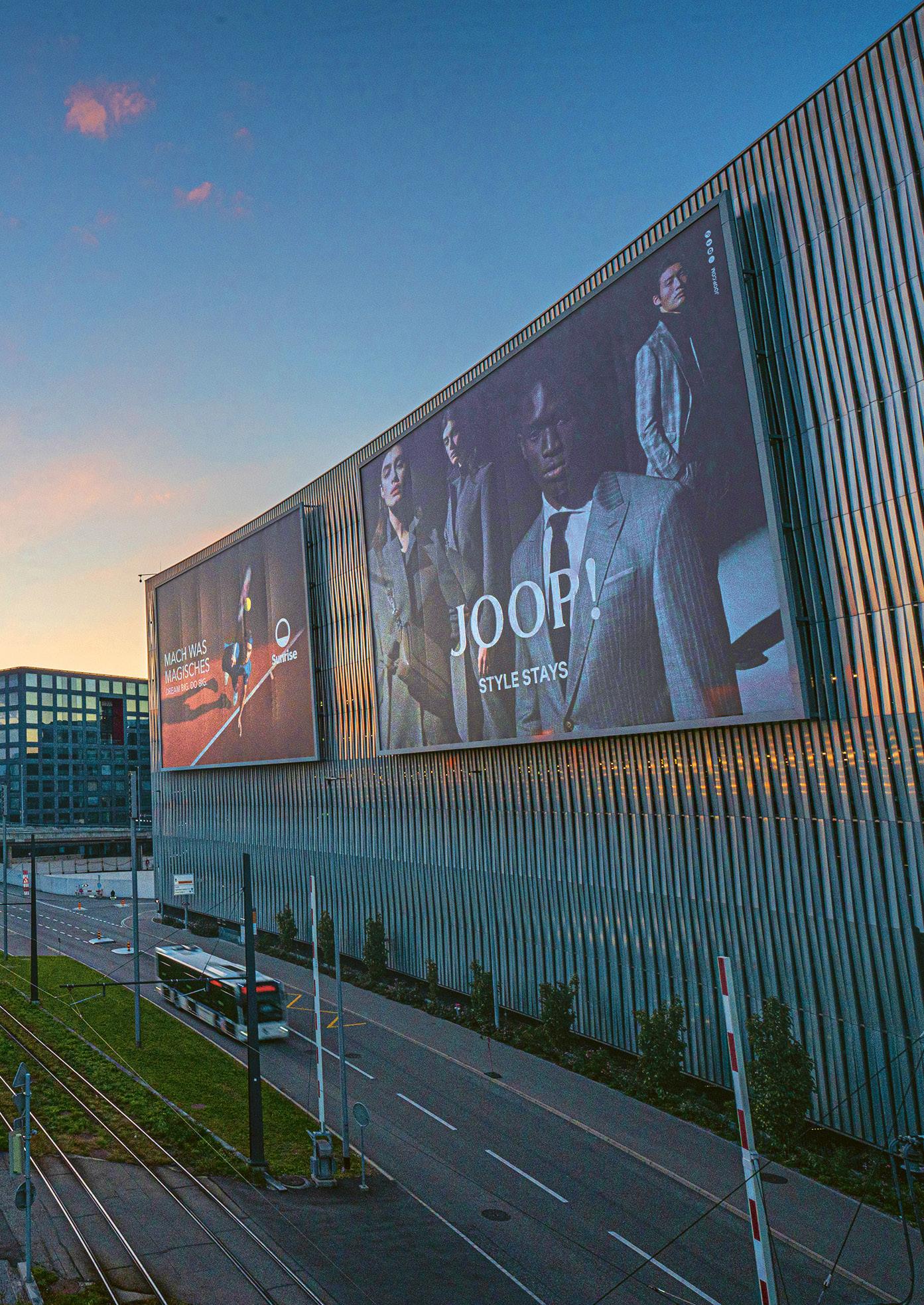 Im Bereich der Promotionsflächen-, Verkehrsmittel- und Flughafenwerbung erholten sich die Umsätze – aufgrund langsameren Frequenzwachstums sowie grösseren Anteils von JahresflächenBuchungen – etwas verhaltener. Rasch hingegen stieg im Jahresverlauf die Nachfrage nach Impact-starken, grossflächigen Angeboten an Toplagen am Flughafen, in den Bergen sowie auch in den Städten. In diesem Zusammenhang konnte sich die APG|SGA die temporären Vermarktungsrechte für ein «MegaPoster» mit einer Fläche von über 172 m² an exklusiver Lage am Paradeplatz in Zürich sichern.