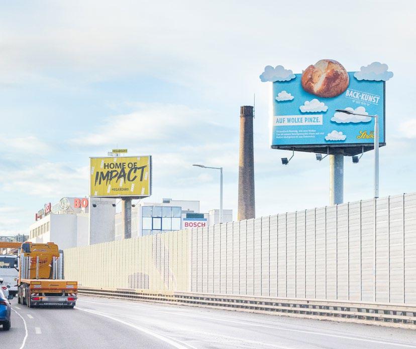 Flaumig wie eine Wolke, mit reichlich Butter und Ei – nach diesem Rezept machte die Bäckerei Ströck den Wienern in den Wochen vor Ostern Appetit auf die typische österreichische Pinze. Übersehen ließ sich das Hefegebäck nicht – zumindest nicht entlang der Autobahn A23, wo Ströck seine Werbung auf einem 40 Quadratmeter großen Megaboard in einem hochfrequentierten Abschnitt platziert hatte. Hier schwebte die fluffige Pinze in Übergröße über den Rahmen des Werbeträgers hinaus. Der gezielte Einsatz dieser so genannten Formatsprengung sorgte für eine aufmerksamkeitsstarke Inszenierung der Werbebotschaft und maximale Sichtbarkeit. Megaboard, Spezialist für großflächige Aussenwerbung, bietet Marken mit solchen kreativen Highlights die Möglichkeit, ihre Botschaften in besonderer Weise erlebbar zu machen.