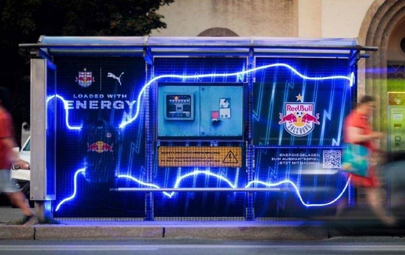 „Loaded with Energy“ … … fueled by passion ist das Salzburger Buswartehäuschen im Sonderformat von Red Bull, das sich für die Hochspannung Gold in der Kategorie Innovative & Ambient eingespielt hat.