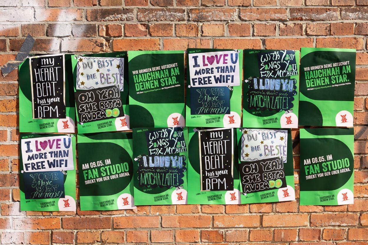 „Hauchnah an deinem Star“ versprach die Rügenwalder Mühle den Fans zum Konzert von Billie Eilish am 9. Mai in Berlin: Rund um die Uber Arena buchte die Marke Mediaflächen im Wert von mehr als 100.000 Euro, um sie den Fans für deren persönlich gestaltete Plakatbotschaften zur Verfügung zu stellen. So wurden Statements wie „I love you more than avocado“ oder „If you spot this, blink twice“ unter anderem auf DOOH-Screens, mobilen Trucks, Plakaten von Jogger-Teams, auf den Arena-Bildschirmen und entlang der vermuteten Route des Popstars durch die Stadt platziert. Ergänzend gab es tagesaktuell Social Media Ads im Umfeld des Konzerts.