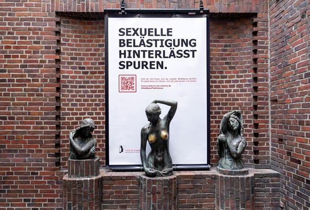 golden glänzen. Ungewollte Berührungen sind auch für viele Frauen die Realität: Zwei von drei Frauen in Deutschland erleben sie. „Sexuelle Belästigung hinterlässt Spuren,“ so der Claim der Kampagne. Spuren, die bei Frauen eben nur weniger offensichtlich sind als bei Statuen. Die größte Herausforderung für die Gewinnerkampagne lag laut Marielle Wilsdorf, Kreativgeschäftsführerin bei Scholz & Friends, darin, „ein tief verwurzeltes Tabuthema wie sexuelle Belästigung mit begrenzten Ressourcen anzugehen.“ Besonders wichtig dabei, so Wilsdorf, war „die Notwendigkeit, die Kampagne hochsensibel zu gestalten, um Betroffene zu ermutigen, ohne sie zu retraumatisieren.“ Darüber hinaus galt es, komplexe Genehmigungspro-