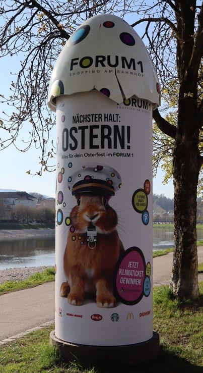 Das Forum 1 machte die diesjährige Ostereiersuche durch die Litfaßsäule ein Stück einfacher. Mit dem drehenden Riesenei on top ist der nächste Halt klar: Osterfest beim Shopping-Center am Salzburger Hauptbahnhof. Mit der Installation holte sich das Forum 1 auch gleich sein eigenes Ostergeschenk ins Nest – als Monatssieger der Progress Out of Home Trophy im April.