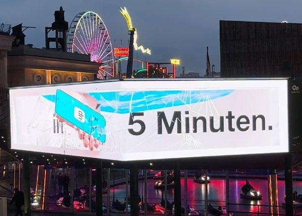 Goldbach Austria (an Azerion Company) startete mit März 2025 den Iconic Screen im Prater, der aus zwei aneinandergrenzenden LEDFlächen – 10,5 und 7 Meter breit sowie jeweils 3 Meter hoch – besteht und damit eine Gesamtfläche von rund 53 Quadratmetern bietet. Die Technologie der „Forced Perspective“ erzeugt faszinierende 3D-Effekte, die Betrachter*innen in Staunen versetzen – und das ganz ohne spezielle Brille. Der Iconic Screen bietet mit einer Auflösung von 3.489.792 Pixeln modernste Broadcast-LED-Technologie. Dadurch entstehen gestochen scharfe Bilder und immersive 3D-Effekte. Ein visuelles Erlebnis, das Passant:Innen dank der strategischen Platzierung direkt am Haupteingang des Wiener Wurstelpraters neben dem weltberühmten Riesenrad die maximale Sichtbarkeit und Aufmerksamkeit garantiert. Der Wiener Prater gilt mit bis zu sieben Millionen Besucher*innen pro Jahr als Ausflugsziel für Familien und junge Menschen.