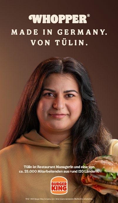 mehr. In Zeiten, in denen die Menschen einen Werteverfall spüren und die Demokratien der westlichen Welt gefährdet sehen, erwarten sie auch von Unternehmen einen klaren Standpunkt. Der Werteindex, die größte Langzeitstudie zum gesellschaftlichen Wandel, hat im letzten Jahr mehr als zwölf Millionen Posts in sozialen Medien analysiert und seine Kernbotschaft für Unternehmen zum Titel der Ausgabe 2024 verdichtet: „Haltung zeigen!“ Wie das geht, beweist auf der PlakaDivaSonderpreis-Shortlist Burger King. Die Kampagne „Made by“ lud die Mitarbeitenden, die aus rund 120 verschiedenen Ländern stammen, ein, Teil der Kampagne zu werden.