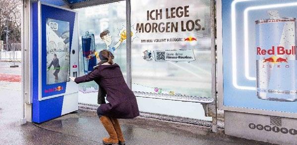 Gewista inszeniert für Red Bull ein aktivierendes City Light mit Station Full Branding an der Wiener Ringstrasse gegenüber dem Burgtheater. Die auf die Straßenbahn Wartenden können zu Kniebeugen animiert und nach Abschluss der Übung mit einer Dose Red Bull Zero belohnt werden. Die interaktive City Light-Fläche wirft die Getränkedose nach erfolgreichem Training aus.