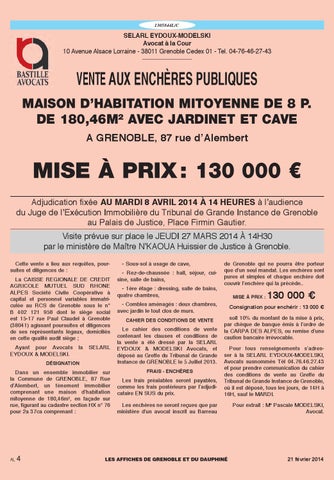 de Grenoble qui ne pourra être porteur que d’un seul mandat. Les enchères sont pures et simples et chaque enchère doit couvrir l’enchère qui la précède.. MISE À PRIX :