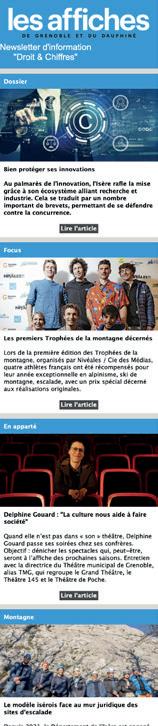 La newsletter (22 n°/an) est envoyée tous les 15 jours : l’actualité en bref, l’agenda des évènements, les DSP (avis de délégation de service public), les appels d’offres des collectivités.