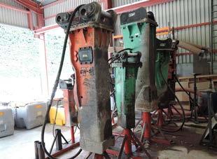 ALLU 1m, 9 Brise-roches hydrauliques de 180kg à 2670kg, 7 lames à neige, 5 saleuses EPOKE, 17 cuves à gasoil Stock de consommables SANY et divers
