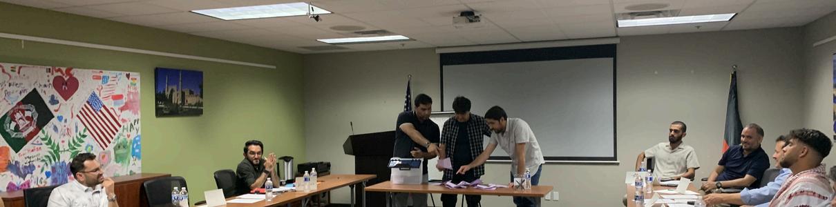After the presentations, participants had the chance to cast their votes When the votes were counted, the results reflected both continuity and progress. Mr. Haroon Safi was elected as the new President of the Afghan Chamber of Commerce in St. Louis. Two women were also elected to leadership roles: one as Vice President and another as Program & Event Director, marking an important step toward gender inclusion in leadership.
