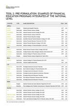 7 NATIONAL FINANCIAL EDUCATION STRATEGIES TOOLKIT Steps of NFES lifecycle ACTIVITY STEPS TOOLS NFESCONCEPTUALIZE 1. Identify NFES lifecycle 2. Define key terms 3. Identify timeline 4. Determine language 5. Align with diagnostic and analysis ANDDIAGNOSTICCONDUCTANALYSIS 1. Identify country context and target group 2. Conduct demand-side mapping and analysis 3. Conduct supply-side mapping and analysis 4. Identify best practices at international, regional and local levels > Supply-side mapping > List of AFI members with FE integrated at national level MECHANISMCOORDINATINGSTRUCTUREGOVERNANCEIDENTIFYAND 1. Identify governance structure 2. Identify lead body 3. Integrate key stakeholders 4. Develop terms of reference ACTIVITY STEPS TOOLS PRIORITIESPOLICYIDENTIFY 1. Identify vision and mission 2. Prioritize key target groups 3. Identify guiding principles 4. Identify strategic objectives PLANIMPLEMENTATIONDEVELOP 1. Identify and prioritize relevant content 2. Identify and prioritize relevant delivery channels 3. Secure buy-in of stakeholders 4. Develop action plan 5. Identify funding sources and budget > Adaptation process > Themes and learning objectives for prioritizing content FRAMEWORKANDMONITORINGDEVELOPEVALUATION 1. Identify M&E framework that integrates activities at national level and programmatic level ACTIVITY STEPS TOOLS PREPARE ROLLOUTFOR 1. Align with best practices 2. Raise awareness 3. Build capacity 4. Pilot on small scale and revise > Sample master TOT agenda > Observation checklist > Participant feedback > Trainer feedback PROGRAMROLLOUT 1. Conduct additional capacity building 2. Rollout at national and community level > Observation checklist > Workshop satisfaction survey ANDMONITORINGCONDUCTEVALUATION 1. Monitor and evaluate the performance, progress and impact of the NFES at national level 2. Monitor and evaluate the performance, progress and impact at a programmatic level > Workshop satisfaction survey > Evaluation framework at national level > Pre and post test > Evaluation framework at program level IMPLEMENTATIONFORMULATIONPRE-FORMULATION