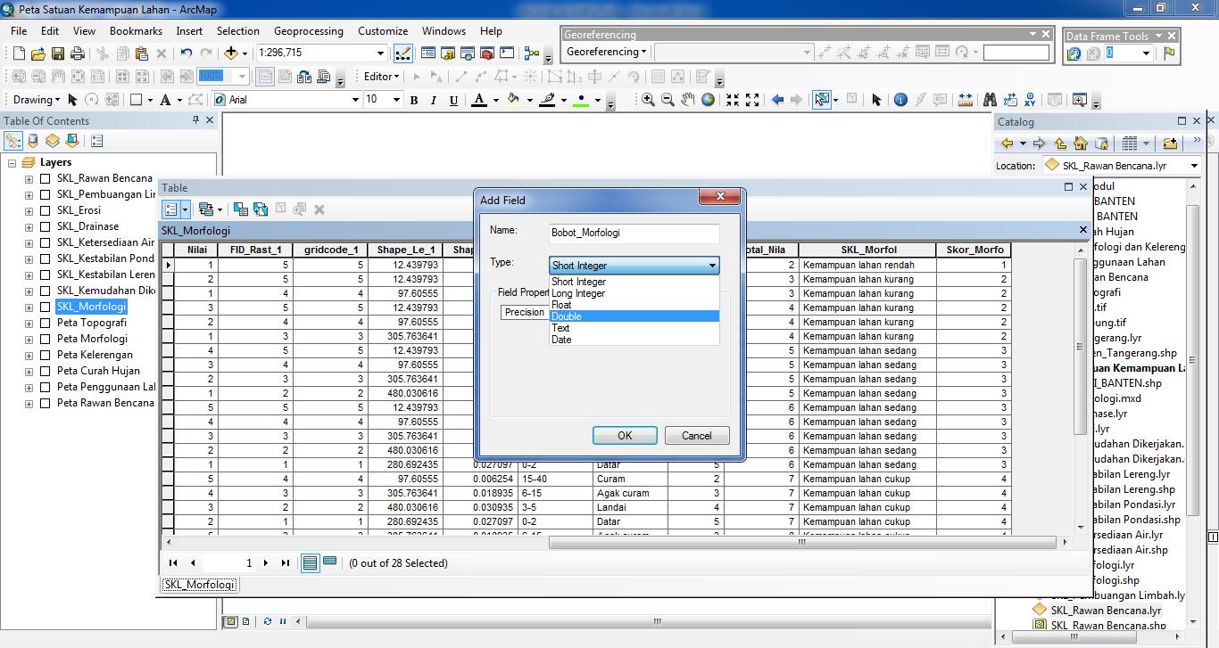 6. Setelah Calculating Records selesai, Add Field kembali untuk membuat dua tabel baru dengan nama SKL_Morfol (Text) dan Skor_Morf (Double). Pada tabel SKL_Morfol, kita