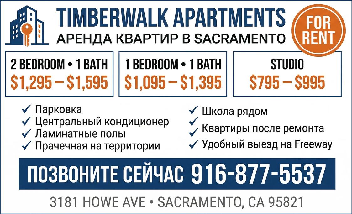 БИЗНЕС-РЕНТ [08] Помещение, пригодное для магазина, офиса, студии и т.д. 1400 sq.ft., возможно разделение. 4837 Amber Ln., Sacramento. Недалеко русский магазин 4 Seasons (Good Neighbor). Коммунальные счета и за интернет включены. Тел.: (916) 605-6275.