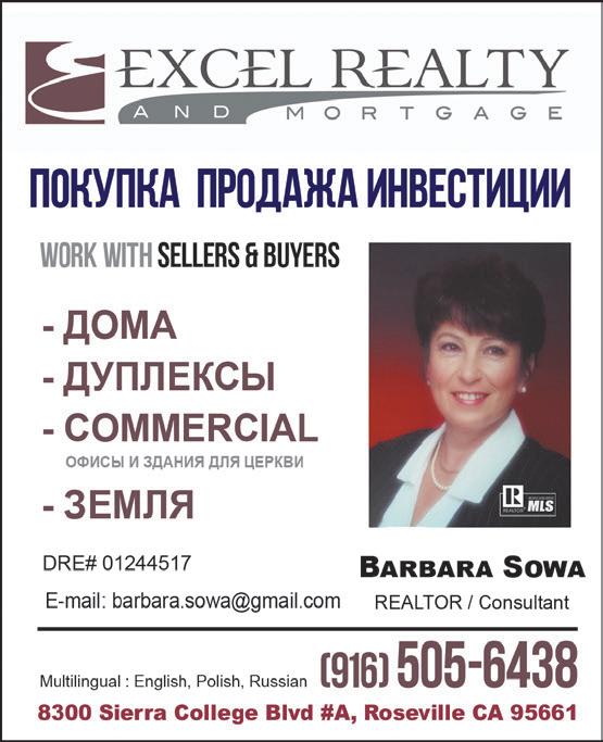 [12] С 1-го мая дуплекс в Citrus Heights: 2 спальни, 1 ванная, хороший район, большой двор, рядом парк. Без животных. $2100 + депозит $2100 + счета за коммунальные услуги. Можно иметь собаку не больше 20 паунтов. 8-я программа ОК. На улице 30 русскоязычных семей. Тел.: (916) 241-6577.