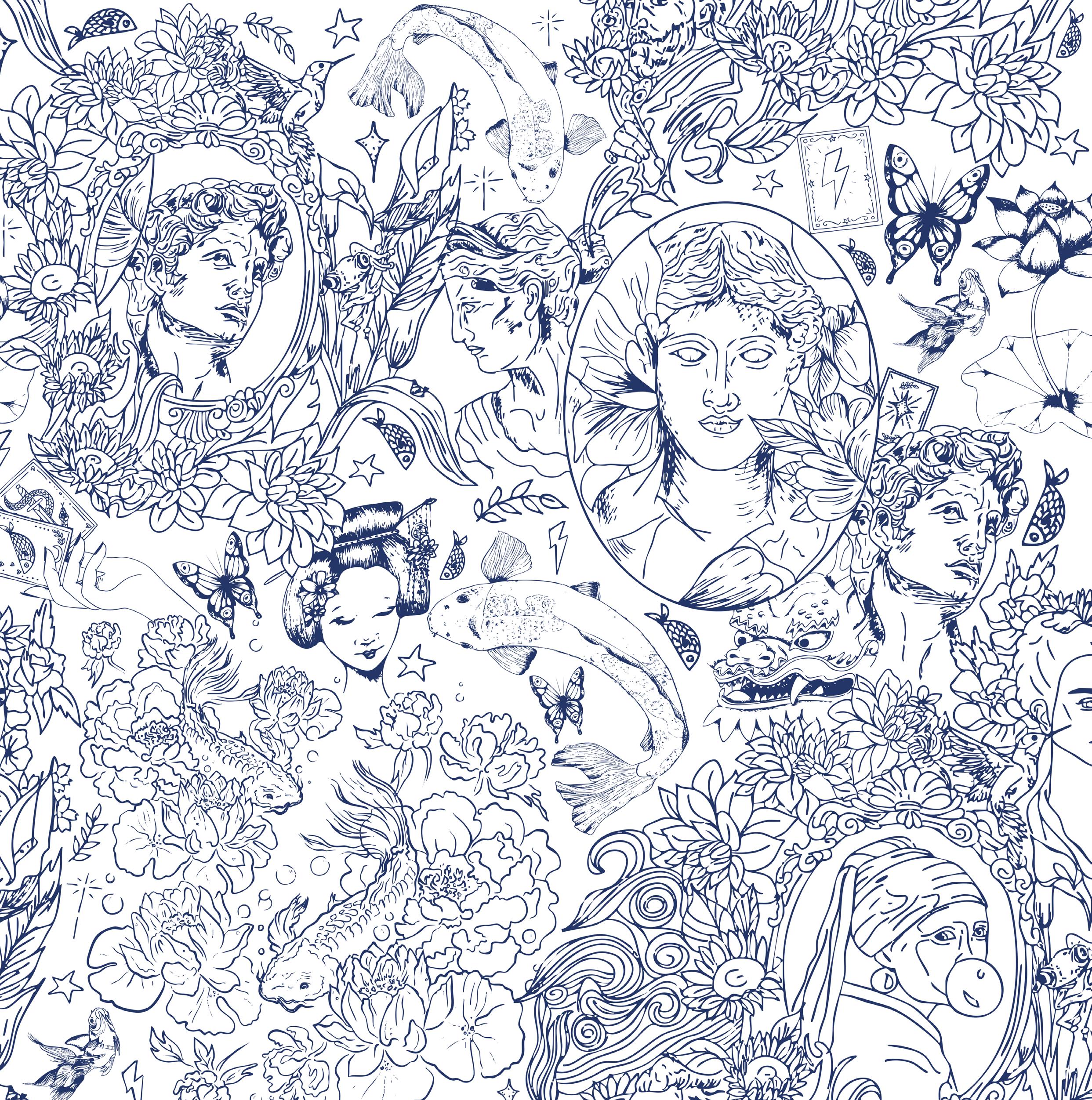 The second and third prints are both variations on the Mermaid print and created by Tattoo Artist Ms Mavis who has provided many body parts with her ornate art.