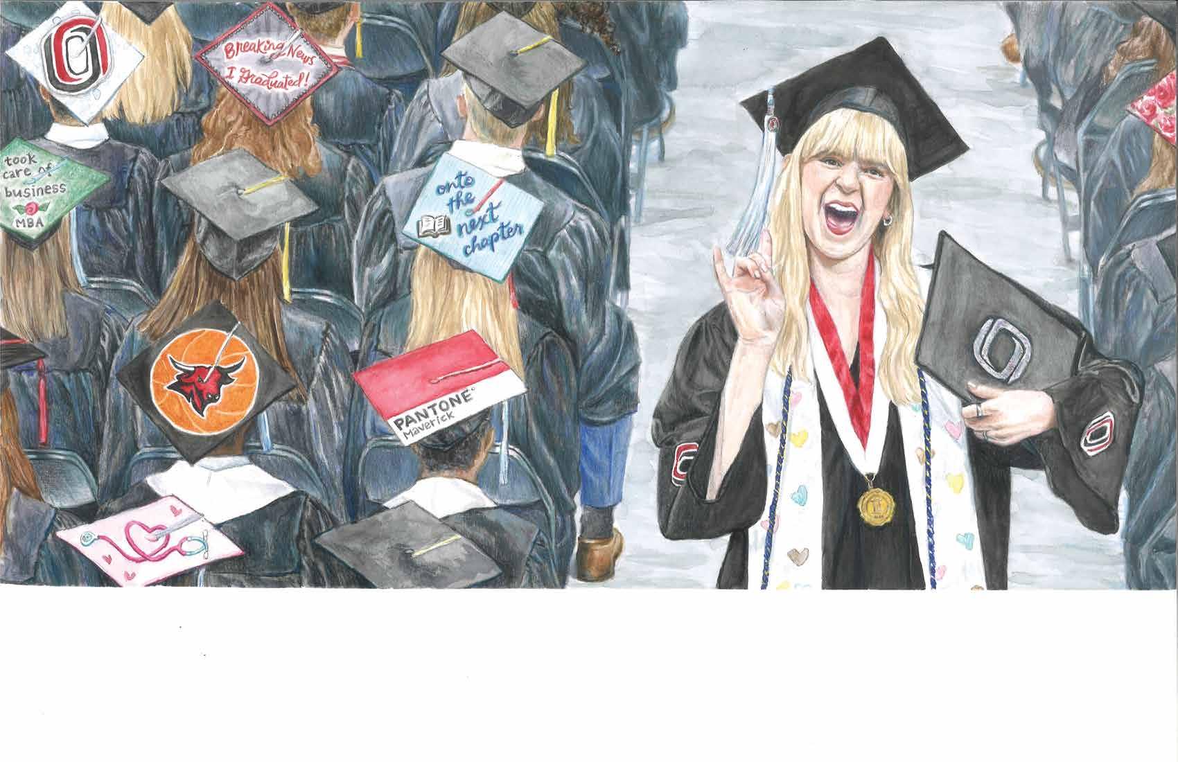 Just Graduated by Kelly Altman. Altman is a visual artist best known for her portraits in colored pencil and watercolor. Based in Ashland, Nebraska, she graduated from UNO in 2016 with a bachelor of arts in journalism and media communication.