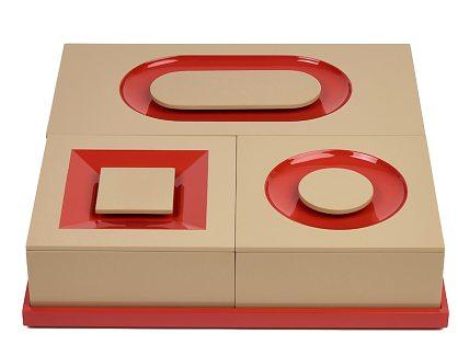 Pourtant, ni le nom ni les matières n’ont un lien direct avec le pays : son travail vise plutôt à restituer le souvenir qu’il en a gardé. Pour donner corps à ses idées, Amalou fait appel aux artisans spécialisés là où ils se trouvent : ses Sign Box modulables (un plateau, trois boîtes) ont été finement laquées par des maîtres vietnamiens. Leur apparence fun et minimaliste, l’effet de bichromie et le travail en creux sur la masse de chaque objet, pour créer les poignées, dévoilent une exécution minutieuse Ce même savoir-faire précieux, on le retrouve dans la marqueterie de paille, les incrustations de coquilles d’œuf ou le travail du métal des artisans marocains.
