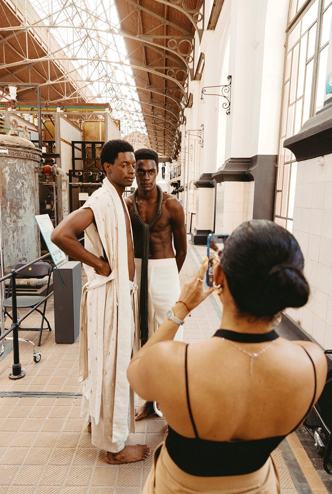 Ci-contre, des pièces de la collection «Ngano» présentées lors de la Portugal Fashion Week Ci-dessous, la styliste dans son atelier.