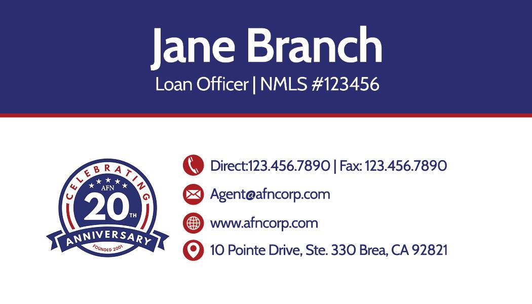 The American Financial Network, Inc. brand conveys a positive customer experience for our borrowers as well as our referral partners. The AFN brand is: • Optimistic & Inspiring • Integrity & Ethics Driven • Professional & Modern • Never Fear-Based Or Negative Through every touchpoint we convey a sense of well-being, comfort, stability, and integrity.