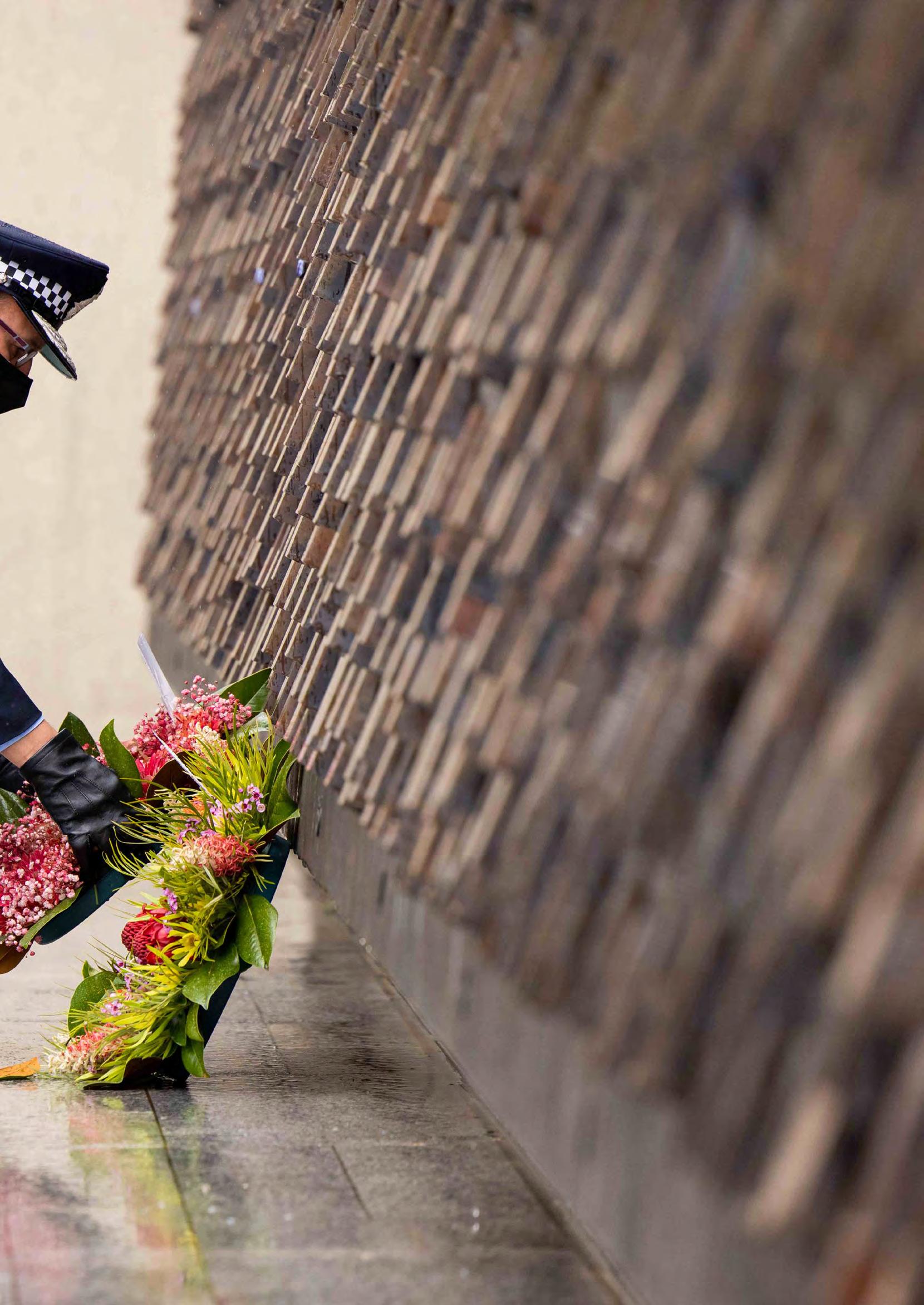 The Wall-to-Wall Ride and the usual dawn and evening services attended by many were replaced by a simple ceremony attended by the Governor-General, Commissioner Kershaw, police chaplains, members of the Ceremonial and Recognition cohort, and layers of wreaths.