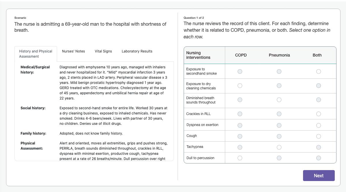 Complex questions in the Next Gen formats align with the cognitive areas of the NCSBN’s Clinical Judgment Measurement Model and require careful analysis, synthesis of the data, and multi-step thinking.
