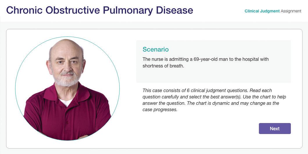 Clinical Judgment elevates students’ clinical reasoning to the next level by challenging them to think critically and make informed decisions that achieve the best patient outcomes. Real-world case studies mirror the complexities they will encounter in a variety of healthcare settings, helping them to build the skills they need to practice safe and effective nursing care and to prepare for the Next Generation NCLEX® with confidence.